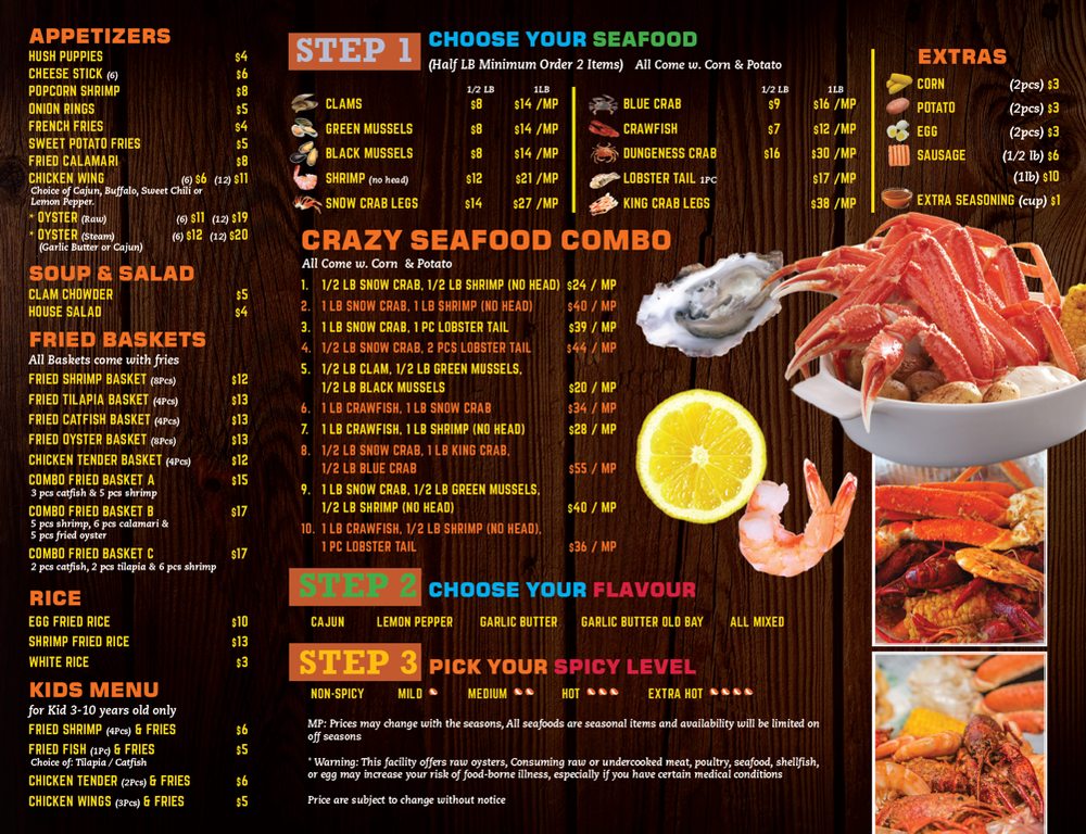 One Pound King Crab, 1/2 lb. Snow Crab and 1/2 lb. No Head Shrimp