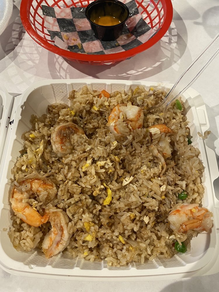 5 pieces shrimp and 2 pieces fish (catfish or tilapia).