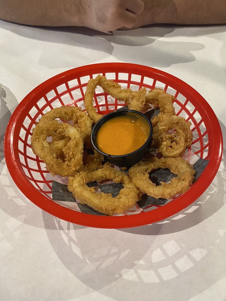 5 pieces shrimp, 6 pieces calamari and 5 pieces fried oyster.